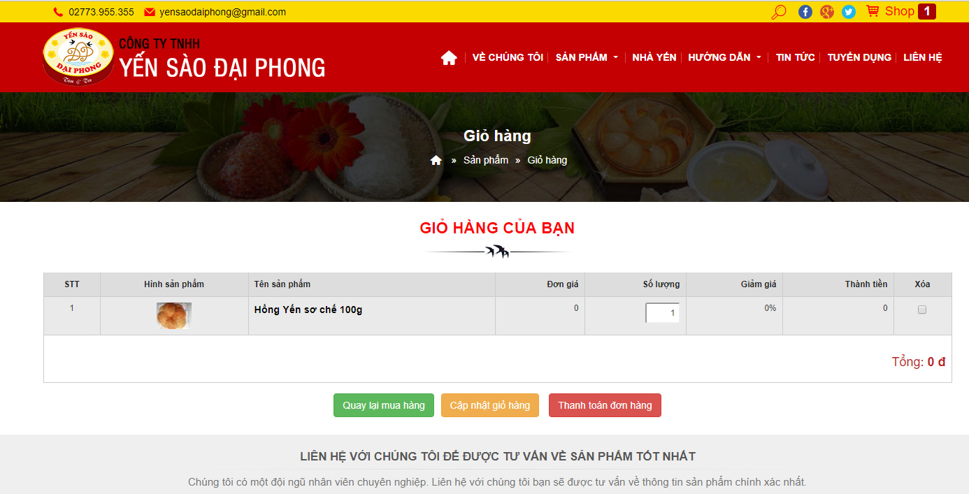 - Bạn vào website www.yensaodongthap.com để lựa chọn sản phẩm