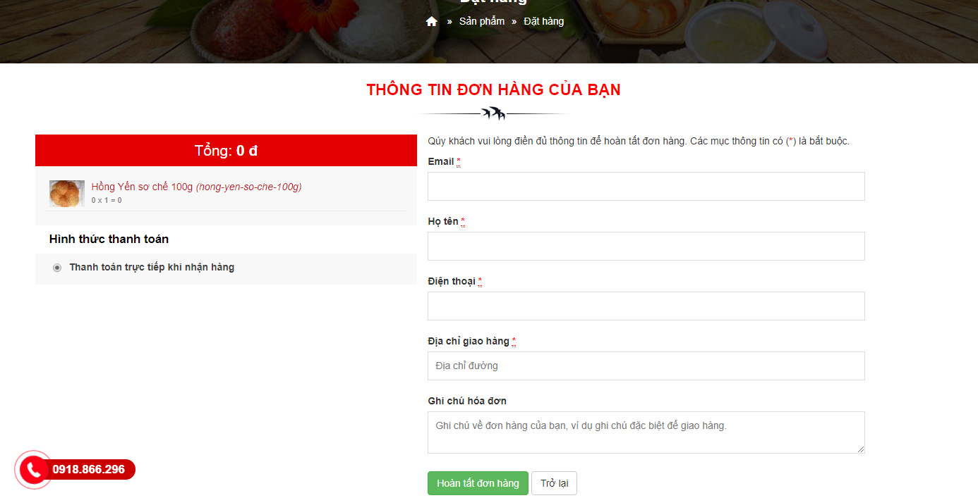 - Bạn điền đầy đủ thông tin cá nhân, ghi chú và chọn phương thức thanh toán, sau đó click Hoàn tất đơn hàng